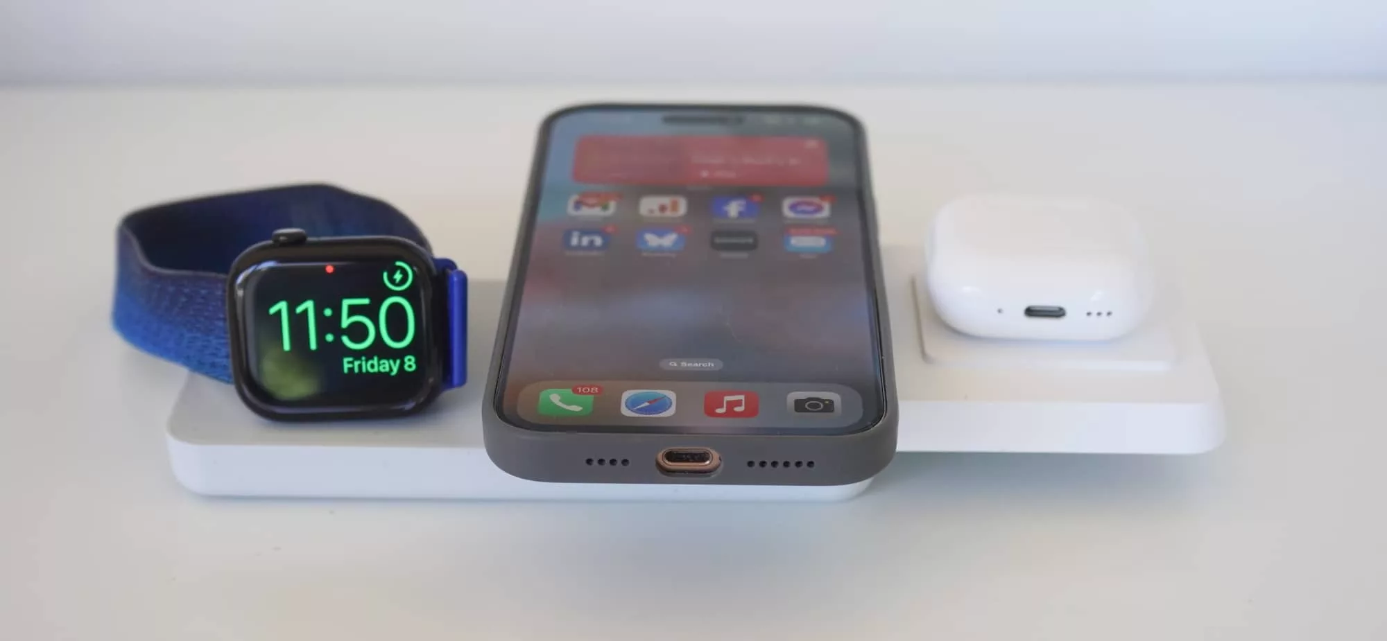 The special charge pack includes a 10,000mAh battery with support for Qi2 and MagSafe for the current and recent iPhone range, a spot for wireless earphones, and a hidden charger for the Apple Watch, too. The USB port for charging can even be used to charge a fourth device.