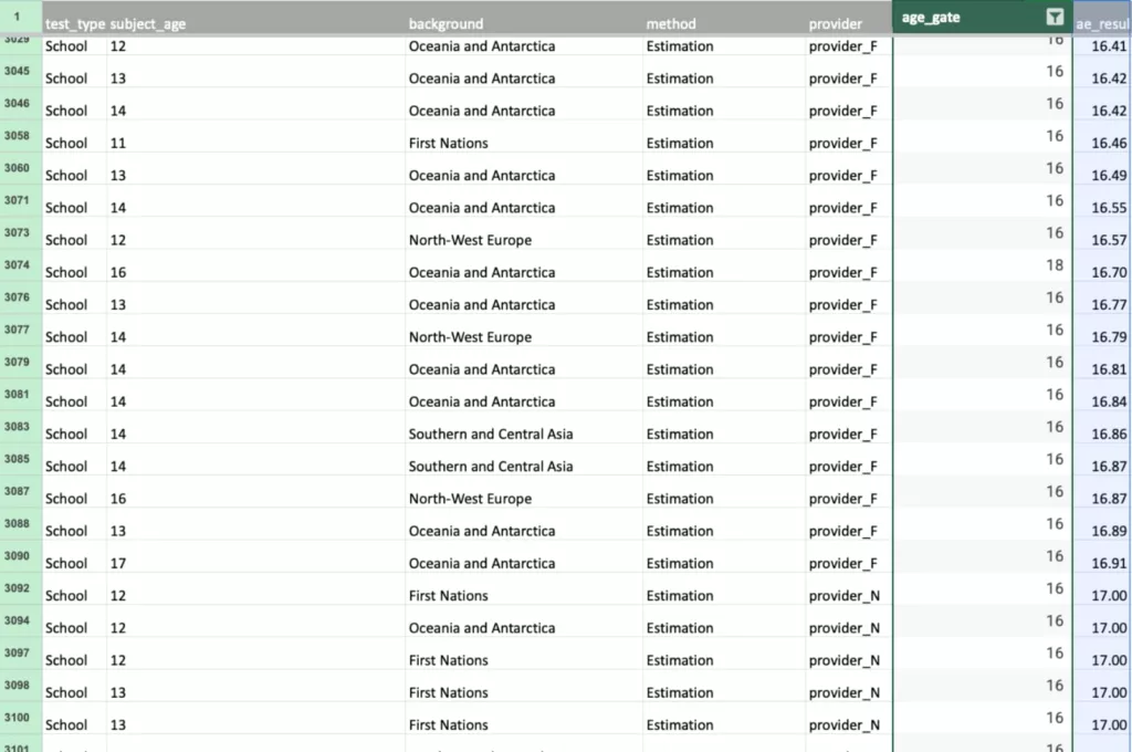 For instance, the age gate managed to pick up on false positives, though tracked to fewer the older the person was. A child tested for an age gate of 13 and older could trigger false positives for age 16, but could also trigger for below, aged between 11 and 12.