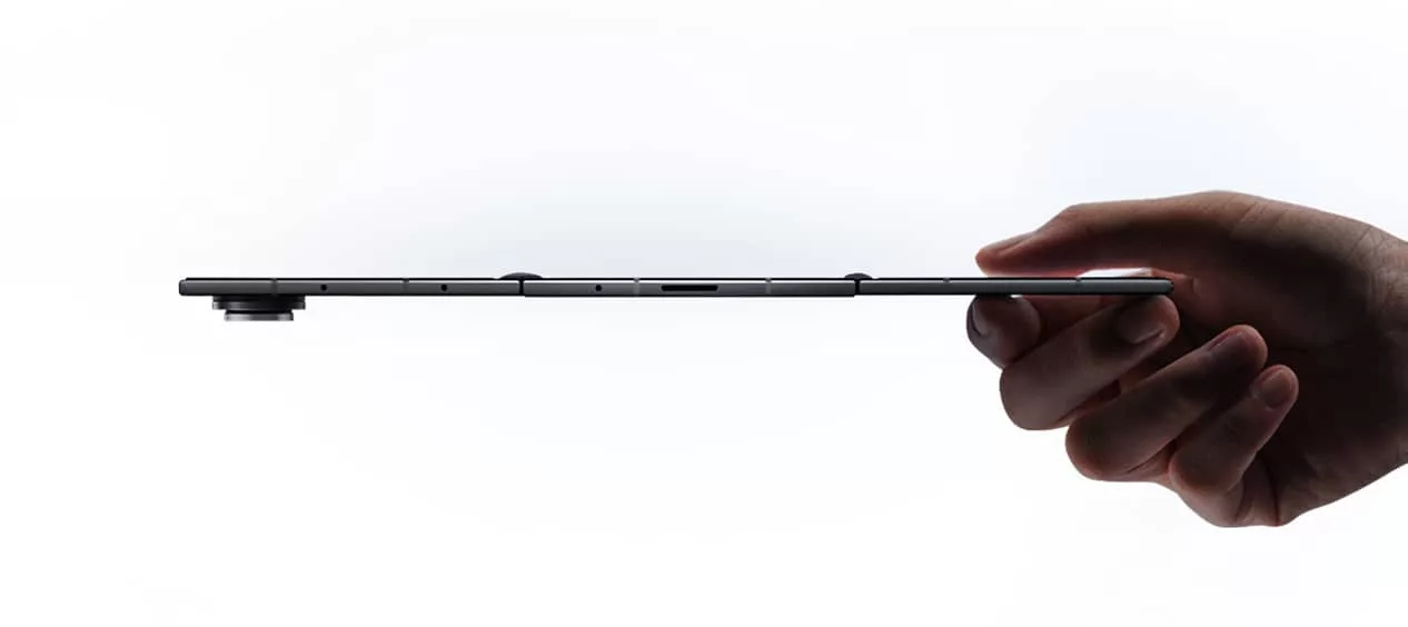 Inside, there’s a Qualcomm Snapdragon 8 Elite chip paired with 16GB RAM and either 512GB or 1TB storage, plus support for wired and wireless charging, a 5600mAh battery, and a crazy-thin thickness of 3.9mm at its thinnest point when unfolded. Most of the phone will be between 4 and 4.2mm when unfolded, but fold it back up and it’s a 12.9 mm phone, a little over 3mm thicker than the iPhone 17 Pro Max.