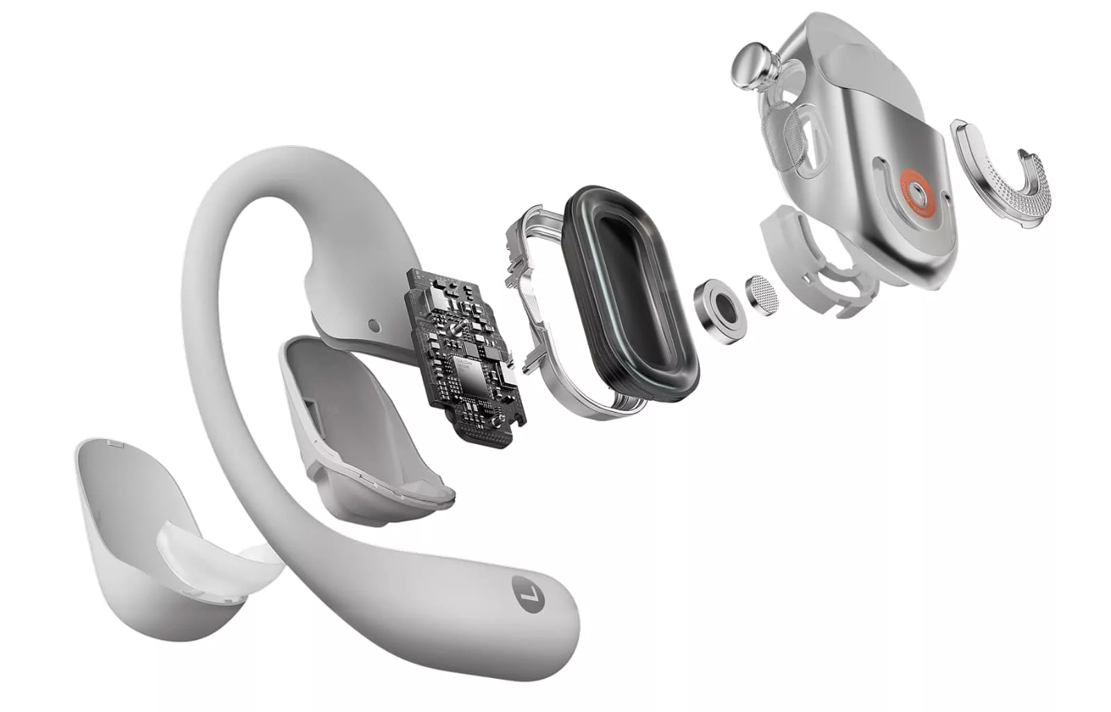 Similar in design, the Shokz OpenDots One roll out to clip onto the ear, resting the speaker against an aural cavity (the hole in your ear), while the rest of the hardware sits in a small barrel that clips to the back of your ear.