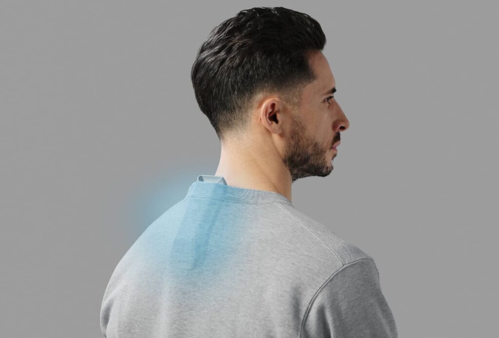 The gadget looks a little like a chimney for your back, but includes fans and modules to control the hot and cold, with an app letting you decide what strength of cooling and heating you want.