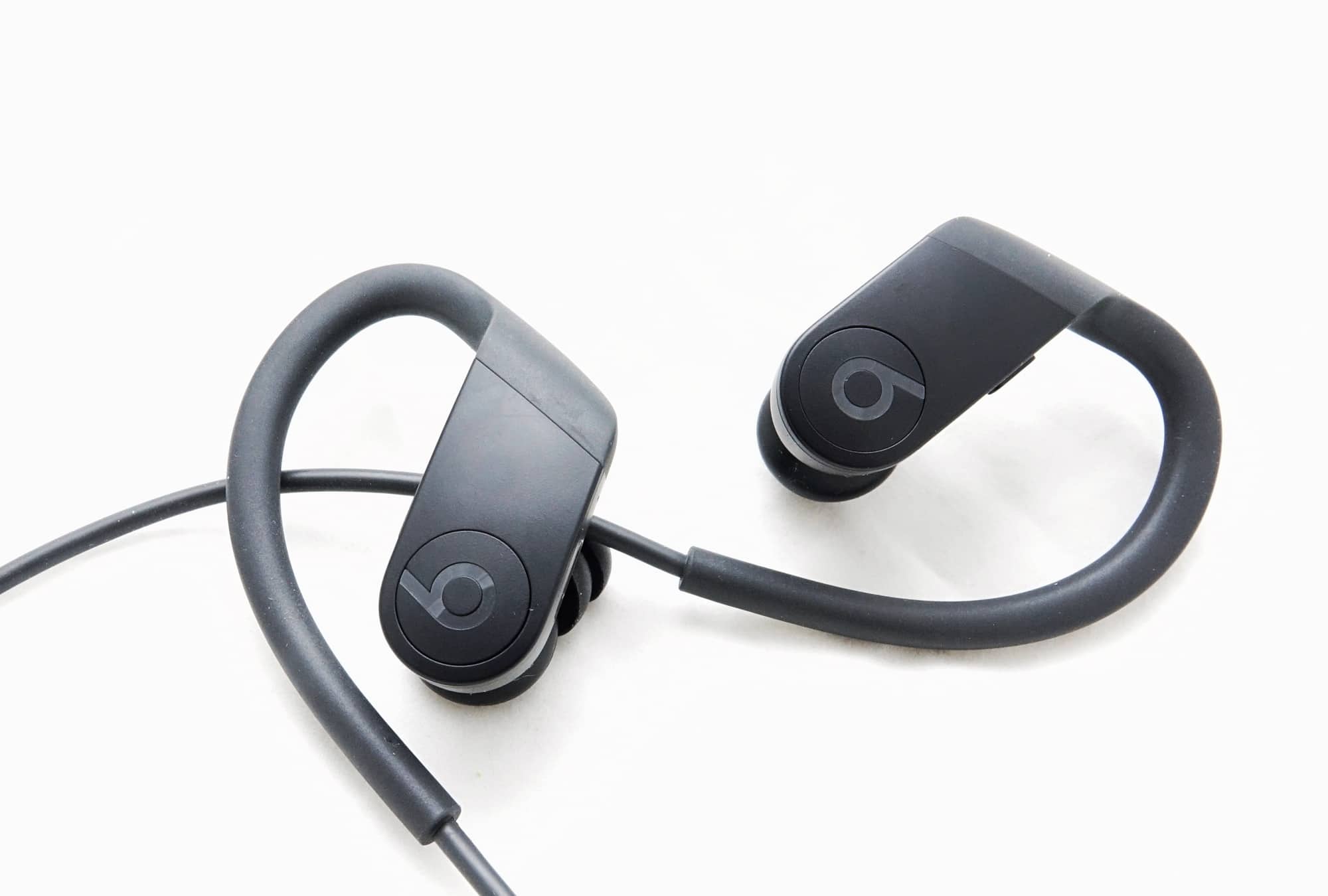 It’s a similar style, complete with ear hooks that help hold the Beats Powerbeats earpieces in place on the ears, though with a cord connecting each earpiece.