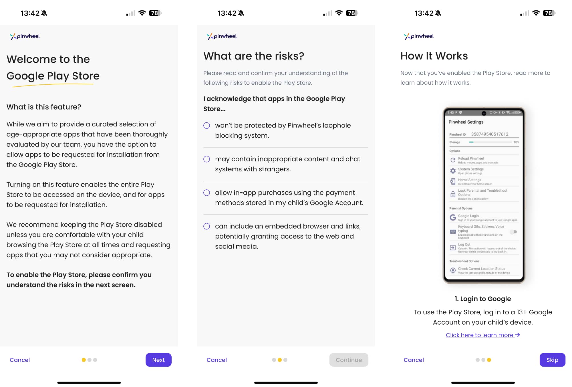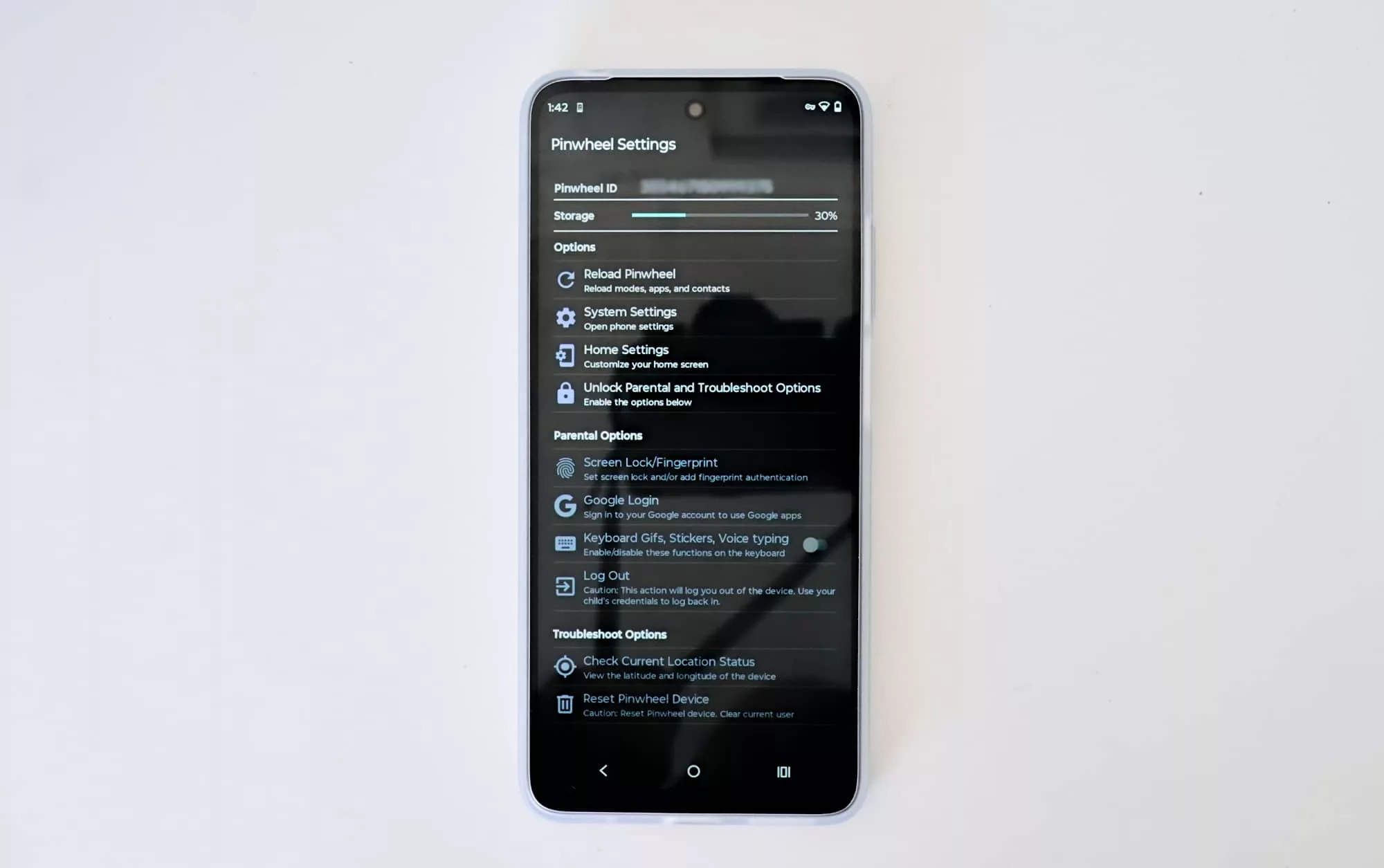 The software sits under the surface and is tied into Android to the point where you can’t even reset the phone. Pinwheel is baked in, with the device ID tied to a parent’s account online, and that parent able to control the phone remotely using the app.