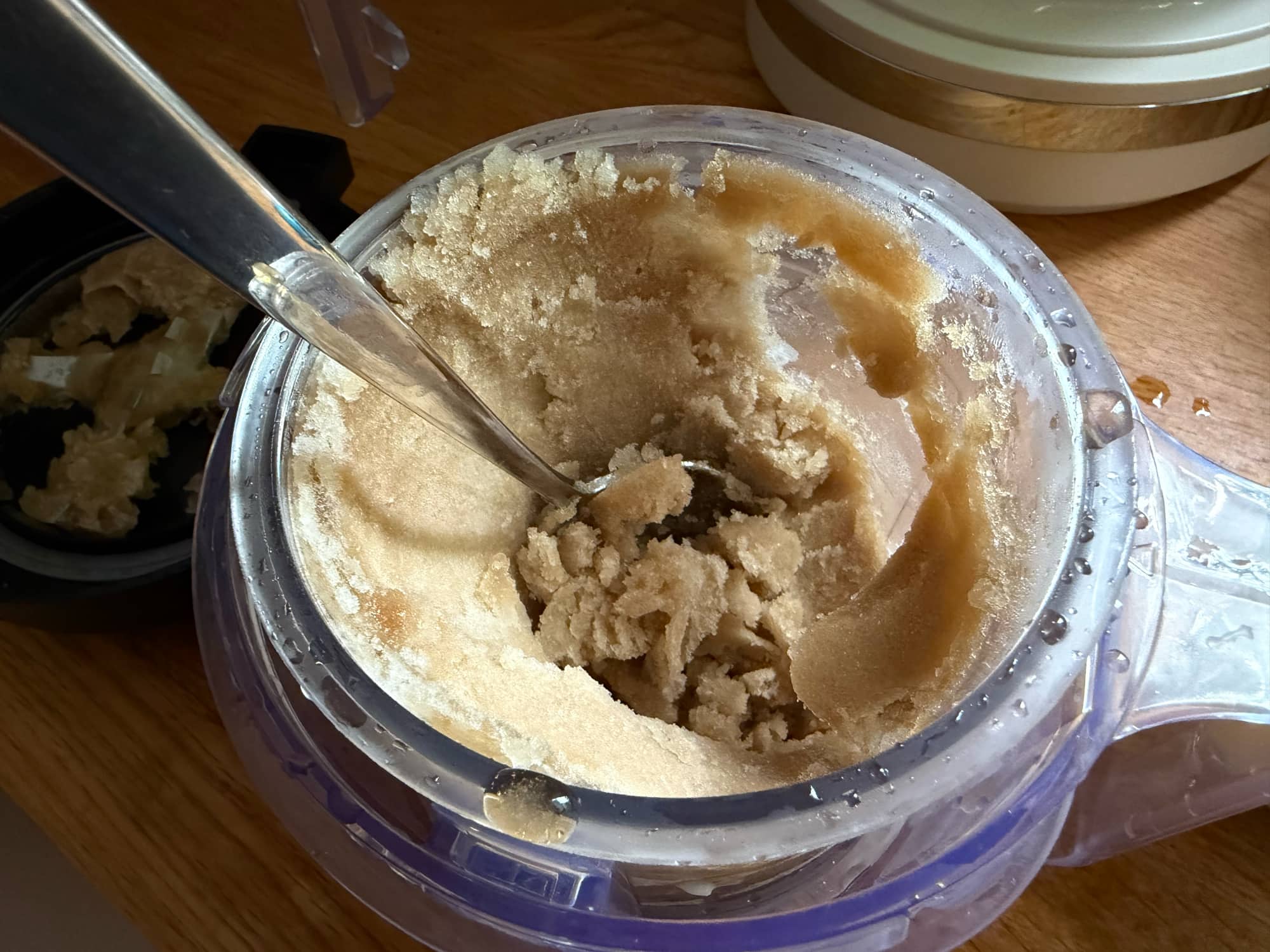 It’s not quite the same; concentrate and you’ll feel the texture lacks that same mouth-feel as professionally-made gelato, or even the variety a decent compressor ice cream machine can make, but the result was better than expected.