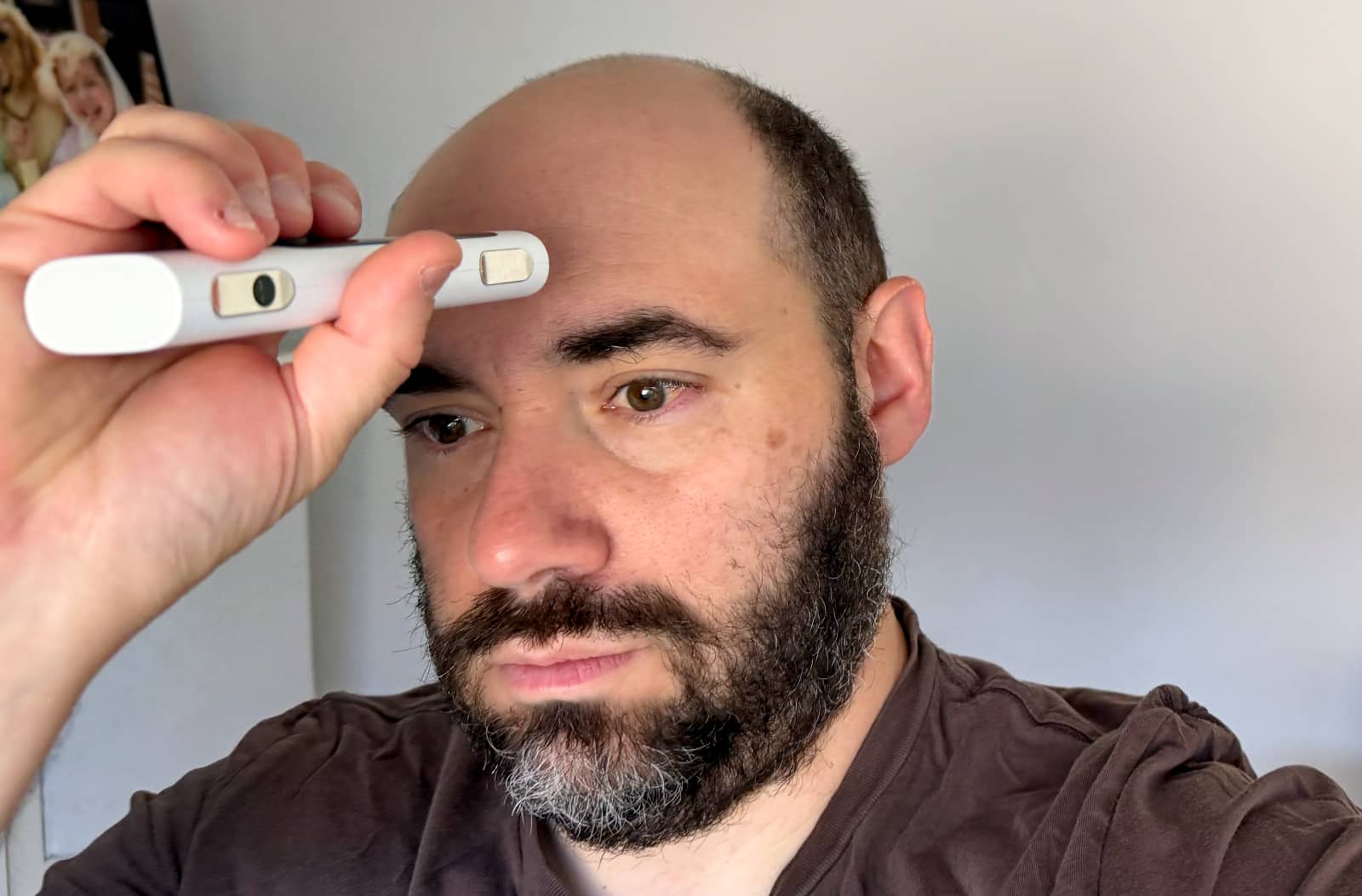 For instance, the temperature seems to work really well, using infrared technology to measure skin temperature while holding the BeamO above the skin. Not directly to it, just in front of it.